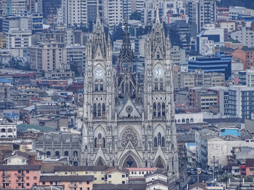 Vanaf het dak van Basílica del Voto Nacional heb je een mooi uitzicht op het oude centrum, met in de verte Virgen del Panecillo. Dit enorme Mariabeeld doet denken aan Cristo Redentor, het grote Jezusbeeld dat uitkijkt over Río de Janeiro. Het beeld van de maagd Maria bestaat uit aluminium mozaïek en staat op een heuvel in de stad. Vanuit Virgen del Panecillo heb je dan ook een mooi uitzicht over Quito, met onder andere de kerktorens van de basiliek del Voto Nacional.