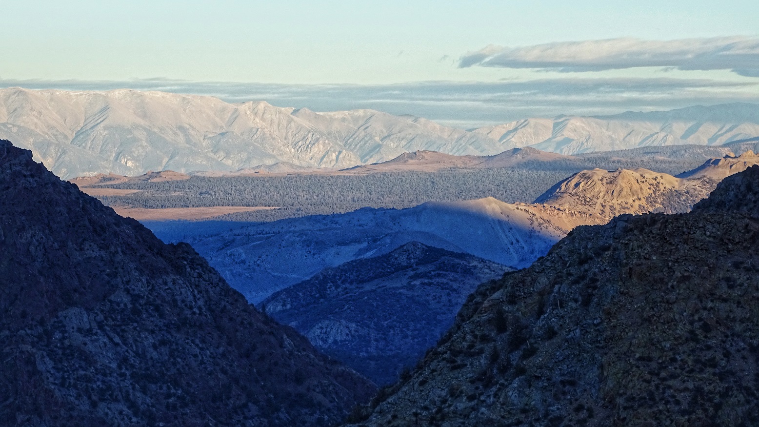 Scenic byway 12 vanuit Tropic, bij Bryce, is met recht een scenic route. We rijden langs kleurige rotsformaties. In rood en groenblauw, in terracotta bruin en zwart, maar ook in lichte tinten. Omringd door woeste, geelgroene bomen en hier en daar een vlok sneeuw op de grond. Homestead lookout (12) en Panorama Point lookout (24) geven een geweldig weids uitzicht over het geheel. De kronkelende weg tussen de puntige en platte rotspartijen door wordt afgewisseld met weidse vlaktes met af en toe een ranch waar de koeien uitgelaten worden. Dit alles onder een lichtbewolkte lucht zo blauw als in the Venetian in Las Vegas en een zon die zorgt voor een indrukwekkend schaduwspel.