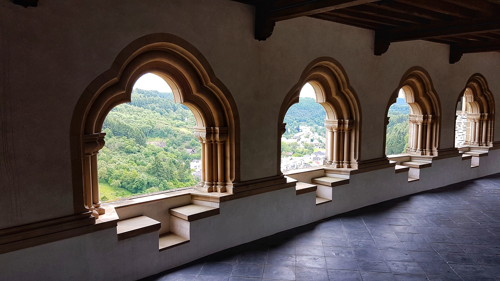De hoge verwachtingen van het kasteel, dat te boek staat als één van de mooiste kastelen van Luxemburg, worden waargemaakt. Ik ben onder de indruk van de oude bogen en de immense ramen met een prachtig uitzicht op de groene heuvels en de stad beneden. Met dit schilderachtige uitzicht heb je geen wandkleden nodig. Al zien we die ook veel. De sierlijke kapel straalt een serene rust uit met zijn hoge witte muren afgewerkt met geel, oranje en blauwe stenen. Een mooi gerenoveerd kasteel, vol historie. En van de Nassaus, dus het voelt zelfs een beetje eigen.