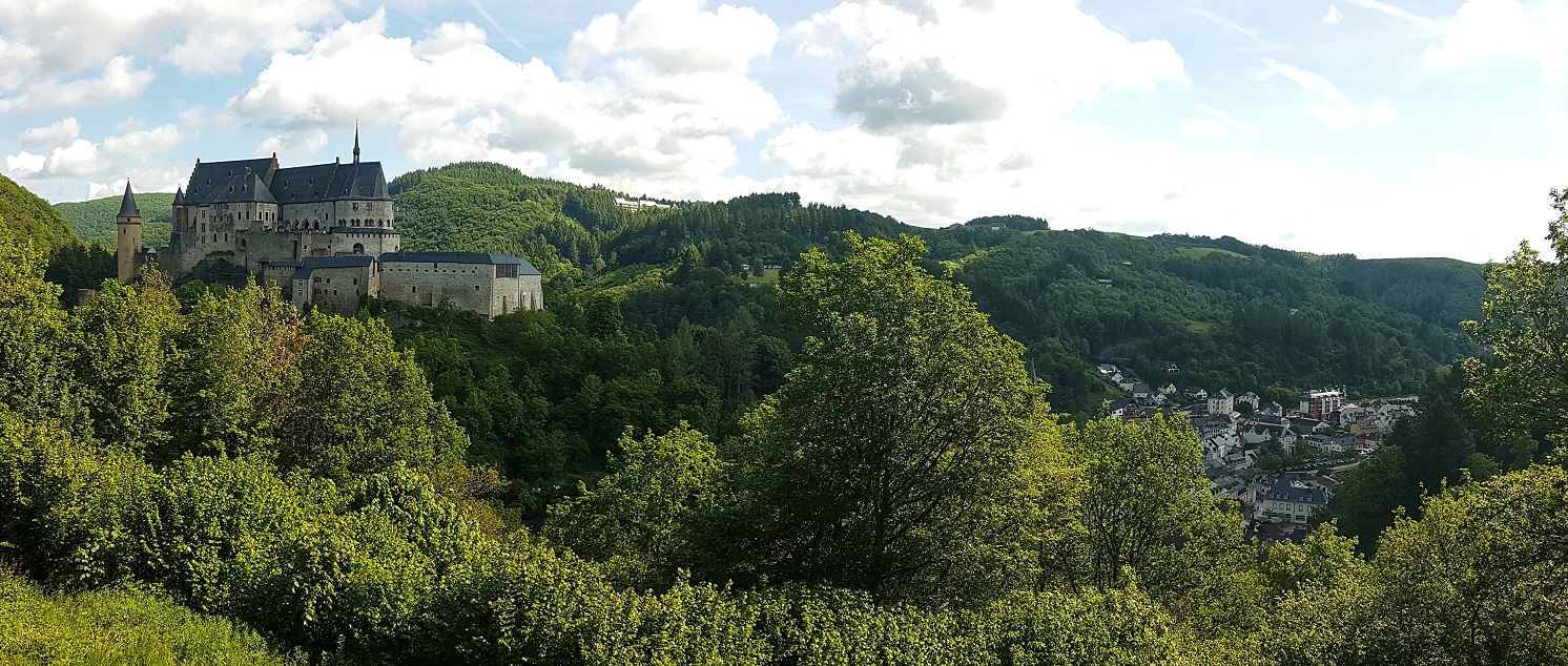 Op weg naar Vianden geeft een uitzichtpunt al een prachtig beeld op de grote trekpleister. Het kasteel van Vianden is hoog op de rotsen gelegen en torent zo boven de stad uit. Zowel van buiten als binnen geen pracht en praal of fantasiedecoratie als in de Efteling of Disneyland, maar veel historie.