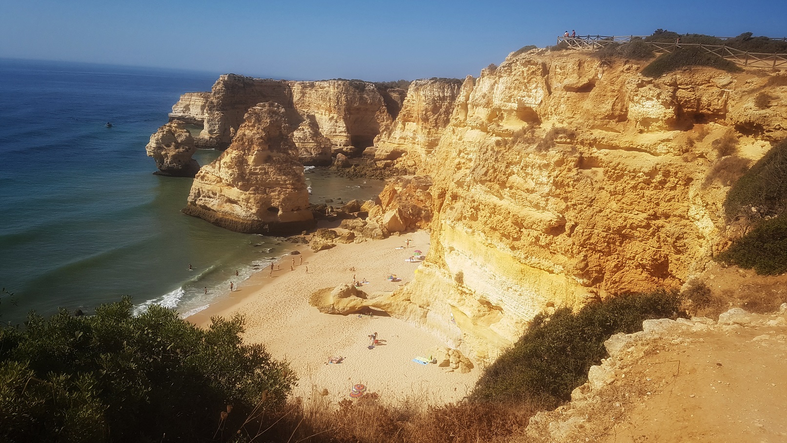 Als we naar onze volgende stop Lagos rijden, ten westen van Faro, rijden we langs de prachtige kust van de Algarve. Een kustlijn met kleine strandjes verstopt tussen de krijtstenen kliffen. Bijvoorbeeld het strand Praia da Marinha – paradijselijk gelegen en met recht een strand dat je vaak terugziet in de “mooiste-stranden-van-Europa” lijstjes.
